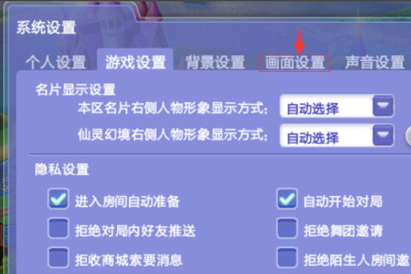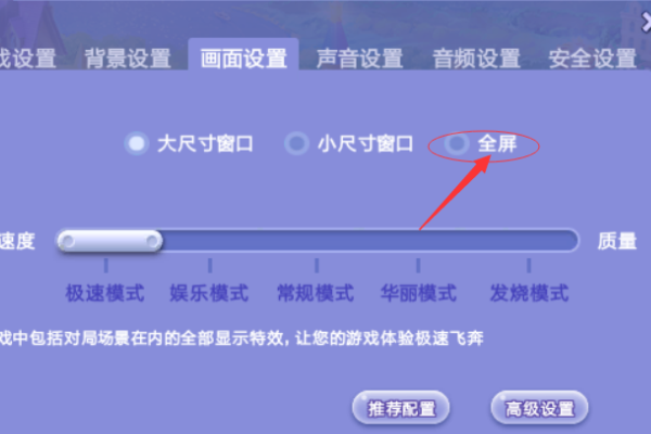 ③在画面设置的界面中,可以看到界面的右上角的全屏的选项,点击选择该选项前的按钮即可。