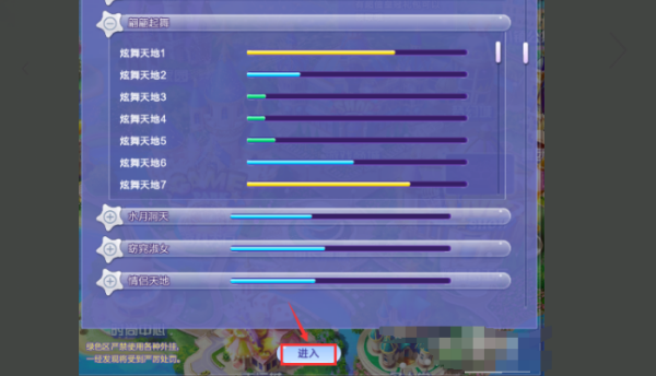 7.选择一个中意的或者人少不卡的频道,双击就可进入,也可以点击下方的【进入】,然后进入游戏大厅。