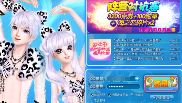3.双击桌面的QQ炫舞图标,输入QQ帐号和密码,点击【登录】