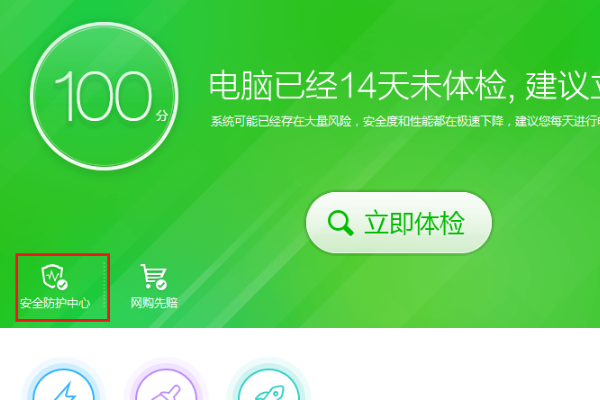 1、打开安全防护中心:打开360安全卫士。点击页面左下侧安全防护中心。