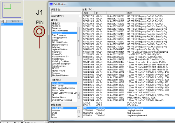 proteus 中的这个元件是一个接插件,所以在接插件类别中,这种元件一般做信号输入插孔,所在类别、子类见下图,名称是PIN。
