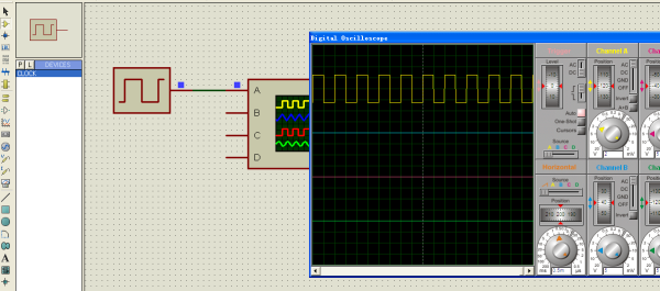 见下图,用示波器就能看到方波信号波形了。双击后可以修改信号的频率。