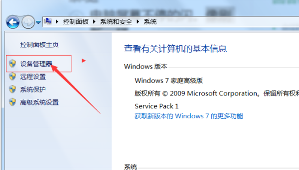 4、进入系统属性后,找到“设备管理器”一项,点击进入。