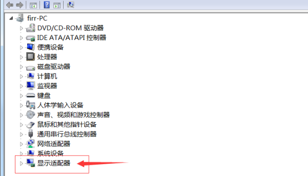 5、进入设备管理器后,找到“显示适配器”一项,点击进入。