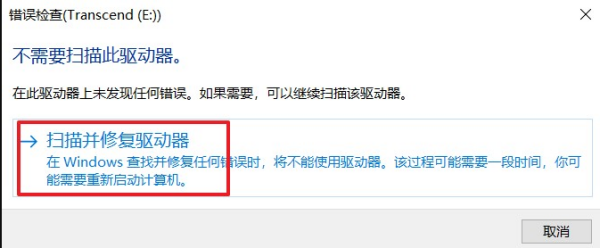 为判断U盘是否为逻辑错误问题,可用windows自带的CHKDSK工具扫描并修复 。