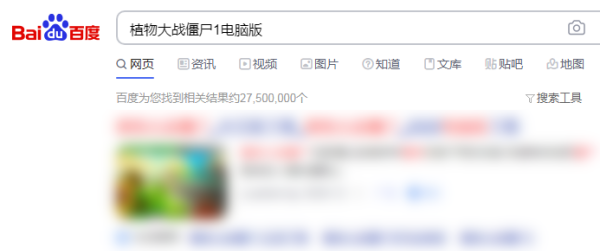 2、在搜索框输入关键词植物大战僵尸1电脑版,点击搜索会显示多个词条;