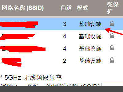 4、然后在网络名称中找到自己的无线名,选中它。