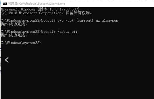 5,关键代码,bcdedit.exe/set{当前}nx alwayson,bcdedit/调试关闭。