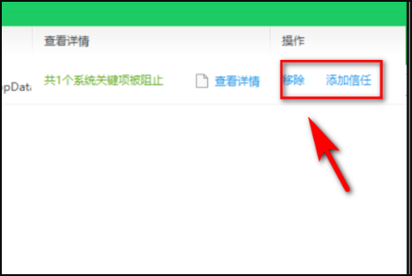 5、在阻止的程序右侧有“移除”和“添加信任”根据自己需求点击。