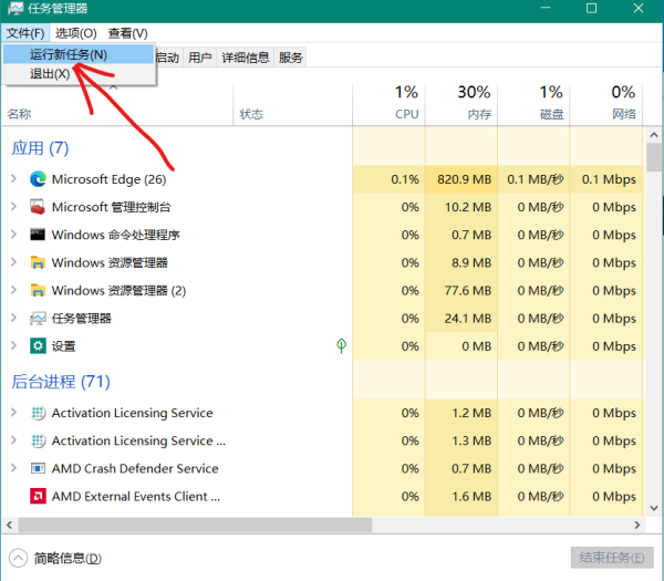 Ctrl+Shift+ESC,打开任务管理器,在左上角的文件下选择“运行新任务”;