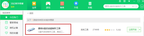 1,打开软件管家,在搜索栏输入“通用U盘启动盘制作工具”并搜索。