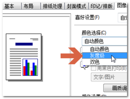 佳能打印机,无论是黑色图片还是彩色图片或者是WORD文档中的图片,只要勾选了“灰度打印”,无论是否选择“仅黑色”墨水,一律会使用彩色墨水打印,以提高层次感,所以如果不想在黑色中掺杂色彩,就在任何情况下都不要勾选“灰度打印”。