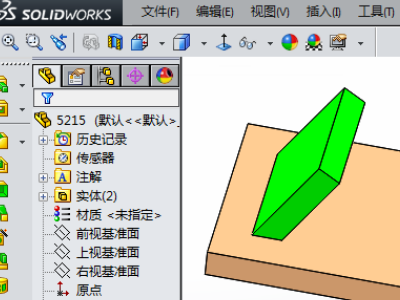 1、首先打开solidworks,想要移动绿色实体改变其方位。