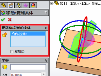 5、然后选择绿色实体,实体显示在“要移动/复制的实体”选择框里,不勾选“复制”。