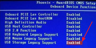 2、进入BIOS设置之后。找到”USB Storage Legacy Support”或”USB Storage Function”选项,设置为”Enabled”。