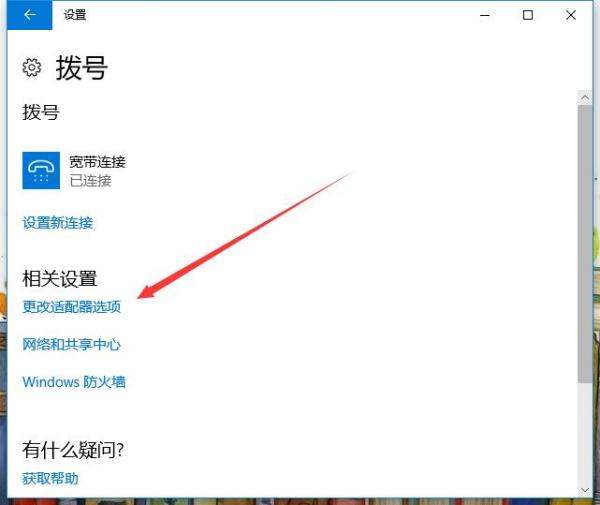 7、接下来回到拨号界面,选择红色箭头所指处的“更改适配器选项”。