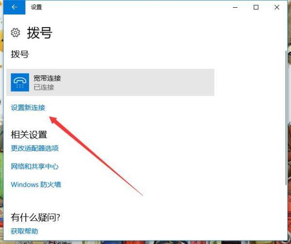 3、然后在拨号界面中选择如下图所示的“设置新连接”。