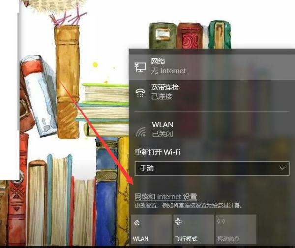 1、首先将宽带网线连接到电脑上,然来后在源电脑上找到如下图红色箭头所指处的“网络和Internet设置”。