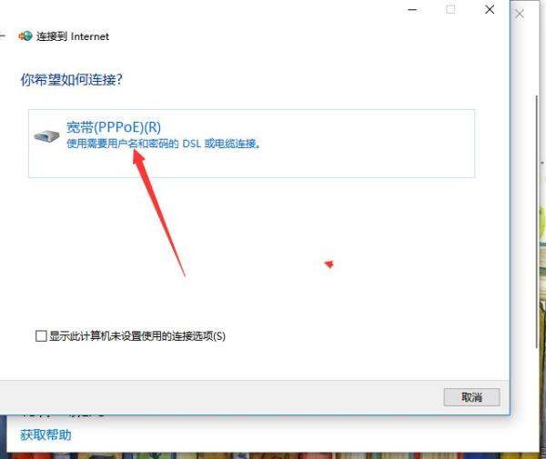 5、接下来选择红色箭头所指处的“宽带PPPoE”。