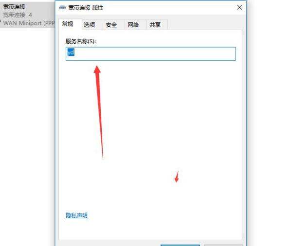 9、然后在对话框中输入服务名称,如移动的是“yd”,点击“确定”即可。