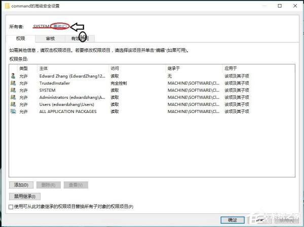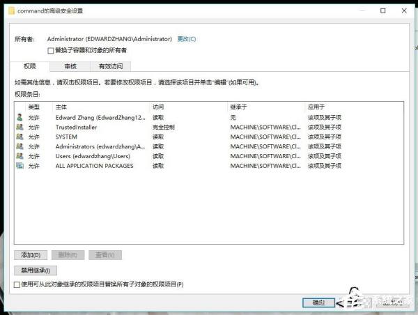 12、回到”command的高级安全设置“对话框单击”确定“;