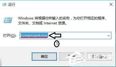 2、此时使用“Windows键”+R,或者单击“Windows”键“所有应用”选择“Windows系统”在下拉选项中选择“运行”,在弹出的“运行“对话框中输入”compmgmt.msc“,点击”确定“;