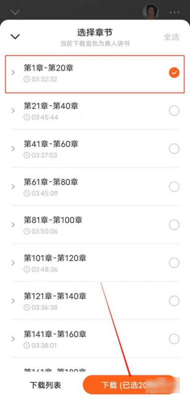 5、如图,选择自己想要下载的章节,点击“下载”即可。