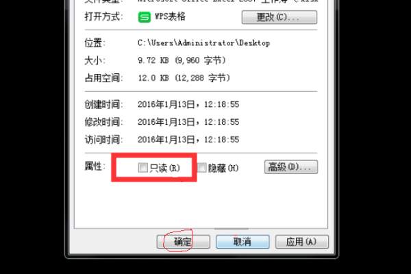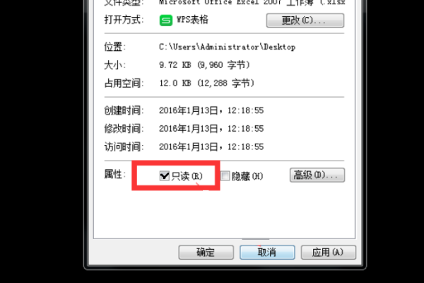Excel文件被设置成“只读”模式,可以在文件属性更改。