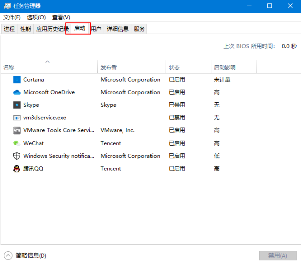 5、接着打开任务管理器,定位到启动,将所有项目禁用,之后重启电脑即可。
