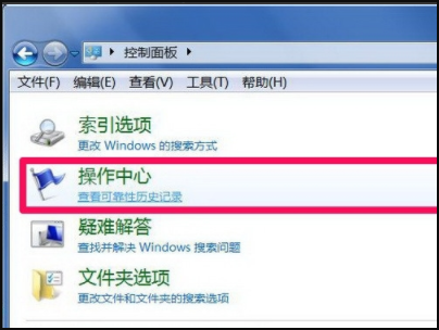 3、在打开的新窗口中,选择并打开“操作中心”这一项目。