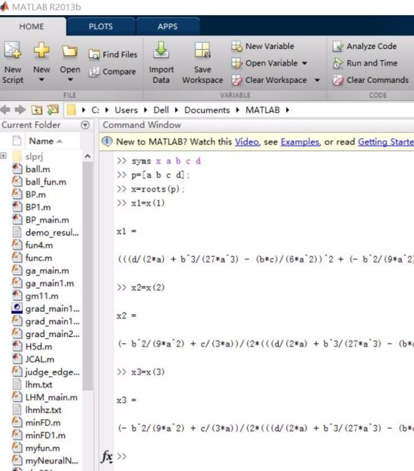 如何用matlab求三次方方程的根