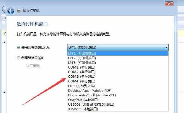 4、接着在打印机类型选择对应端口进行操作,如图所示。