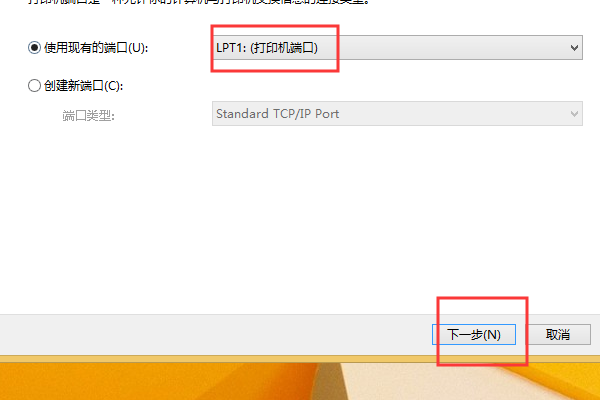 4、页面跳转以后点击选择打印机的连接端口如LTP以后点击下一步按钮。