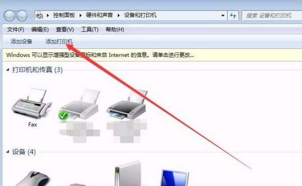 2、打开设备和打印机面板之后,选择添加打印机选项设置,如图所示。