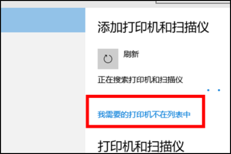4、搜索后,单击“我所需的打印机不在列表中”。