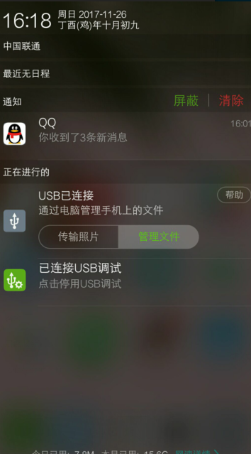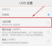 5、将手机连接电脑,连接方式选择“U盘功能”即可。