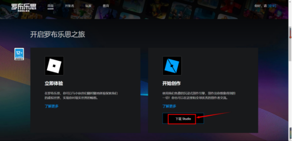 打开浏览器输入罗布乐思搜索,点击进入罗布乐思的官网,然后点击下载Studio即可下载。