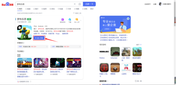 2、其次打开浏览器以后在其主页面最上方搜索框内输入罗布乐思游戏官网,并点击搜索。