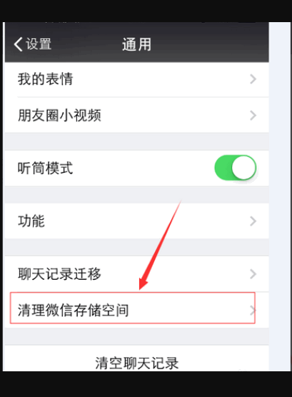 3、接着,点击“清除微信存储空间”选项,如下图所示。