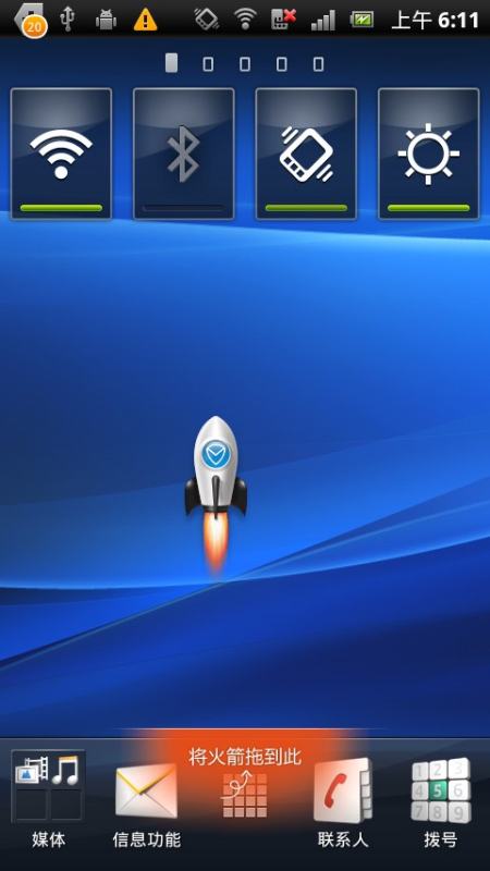2. 按照提示,将小火箭拖至发射处。当发射处颜色从橙色变为黄色,并提示“请松手,火箭发射加速”时,放手小火箭,一箭清理运行内存功能即刻完成。