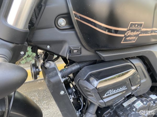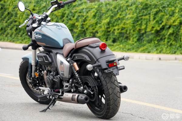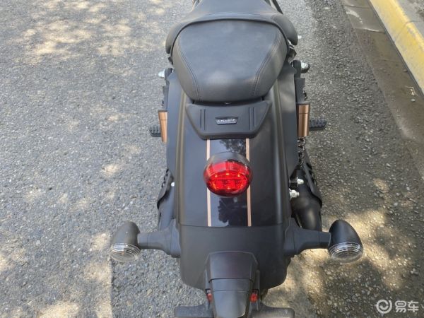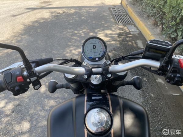 首先这款车外观很出彩,车头车尾均为圆形灯组、两段式座椅、水滴形油箱、鱼雷排气,这让整车的复古巡航气息非常浓厚;而且坐姿方面,以小编180cm的身高,骑行三角和腿部的感受很舒服。