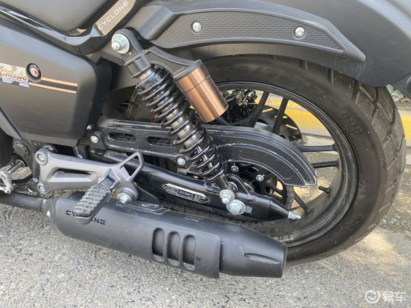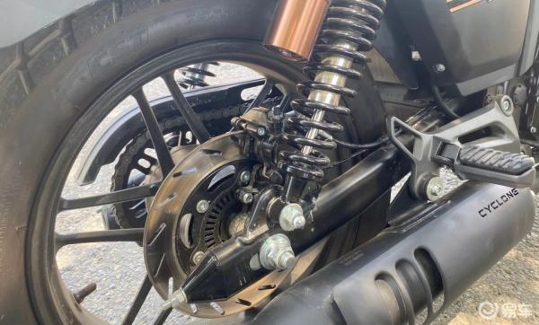 RA401的悬挂部分配备了一对粗壮的倒置前减震和带有外置气瓶的后减震来提供稳定的驾驶运动感。车架部分也是巡航车型经典的双摇篮结构,稍稍体验就能感受到赛科龙本身的运动基因,不过它仍然带有那么一点遗憾,我们前面说到的低位脚踏设计限制了RA401的左右倾角,明明车身还非常稳定,脚踏探底钉却过早的告诉你要保持警惕。这显然是设计师在告诉你,攻弯并不是巡航车的强项,要追求运动激情还是得让自家仿赛RC401上。