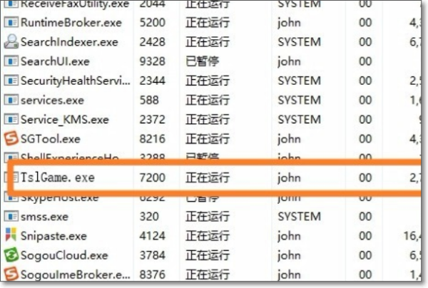 4、然后找到绝地求生的程序进程,如图所示。