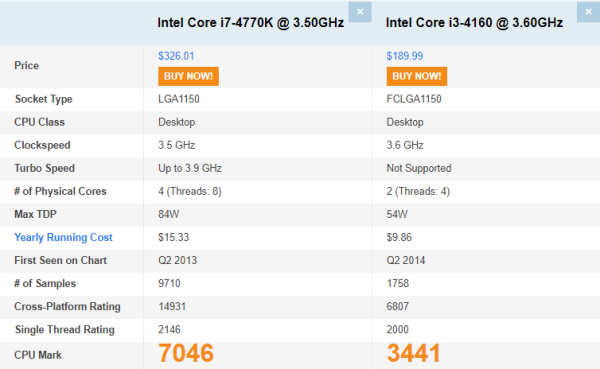 2、Intel的处理器对于内存带宽要求不是很大,对于CPU的性能影响不大的,因此还是i7-4770K更好。