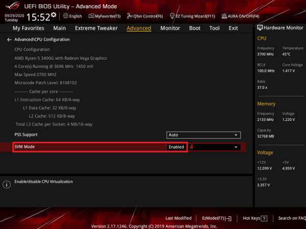 3. 点选[SVM Mode]选项并设置为[Enabled]