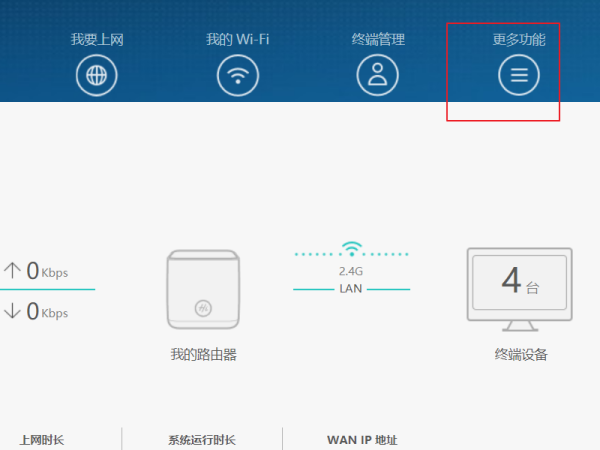 3、进入路由器设置界面后,点击右上角的更多功能。