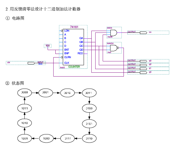 用74LS161设计模N=8的加法计数器,用反馈清零法。
