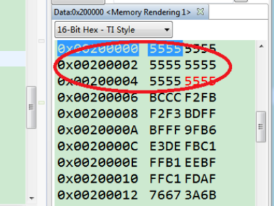 4、最后将程序下载到控制板,通过“View—>Memory”进行在线调试查看,可以发现在片外RAM中的数据变化。