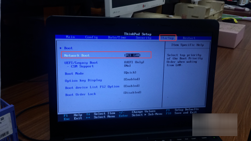5、然后回到主界面点击Startup,再选择Network Boot,按enter见键。