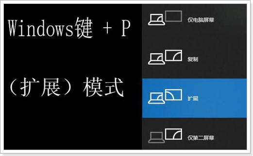 设置方法:Windows+P组合键,即可调出设置菜单→扩展。.确保外接显示器连接正确,点击检测、识别即可。移动鼠标,就能在两台显示器中自如操作(可以直接在屏幕①拖拽到屏幕②)。